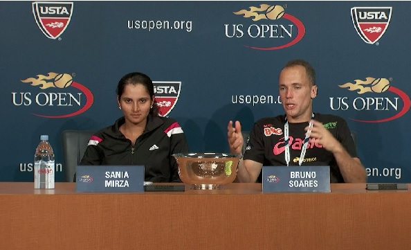 Sania Mirza and Bruno Soares after match at US Open, Flushing, NY on Sept 5, 2014