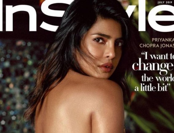 Dressed in a golden sari by designer Tarun Tahiliani, Priyanka flaunted her bare back while doing a photo shoot for American magazine InStyle's July 2019 issue.