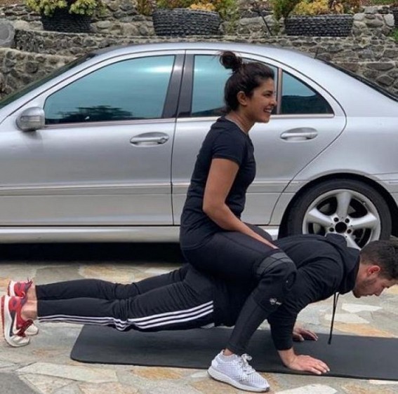 In a new Instagram post, Priyanka is seen with Nick during their workout session. In the image, Priyanka sits on Nick’s back while the singer continues his workout. The couple sports matching all-black workout gear.