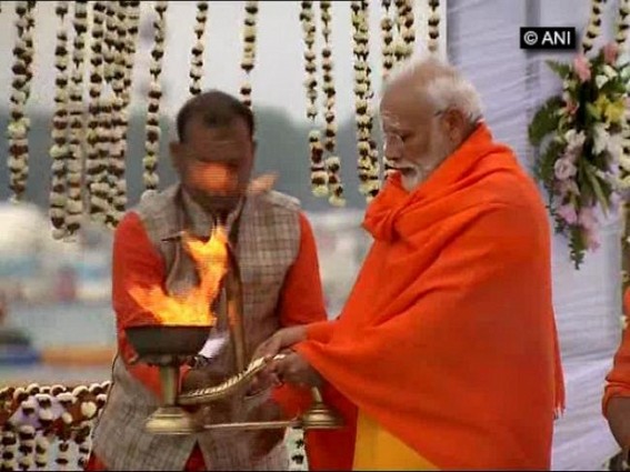 Amid chanting of hymns, the prime minister also did a brief 'Sankalp' for which he later offered some 'dakshina' to the priests. He was accompanied by UP Chief Minister Yogi Adityanath and state BJP chief Mahendra Nath Pandey during the rituals.