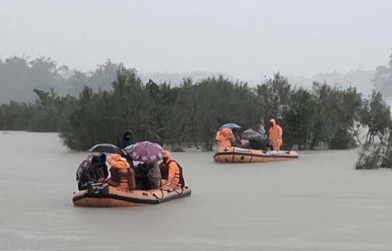 Besides Assam, at least five people were killed in floods in Meghalaya’s West Garo Hills district where the deluge has affected about one lakh people during the past few days. Meanwhile, heavy monsoon rains affected normal life in most other northeastern states. The rainwater has inundated vast human habitations and low lying areas of Tripura, Meghalaya and Mizoram. In the ongoing annual monsoon flood, western Assam is the worst affected. According to the officials, of the 24.30 lakh people currently affected in Assam, around 16 lakh are in five districts — Goalpara (458,020), Barpeta (352,587), Morigaon (314,955), Dhubri (277,612), and South Sakmara (179,700) districts, all in western Assam.