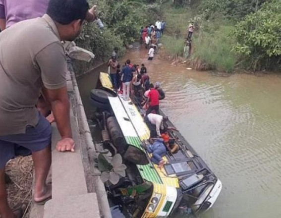 The accident occurred in Jalleru in Jangareddygudem mandal, about 55 km from district headquarters Eluru. According to police, the bus of Andhra Pradesh State Road Transport Corporation (APSRTC) hit a bridge railing and fell into the rivulet when the driver was trying to avoid hitting a lorry coming from the opposite direction.