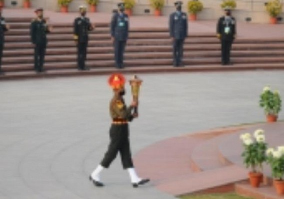 New Delhi, Jan 21 (TIWN) Amar Jawan Jyoti at iconic India Gate was merged with the flame at the National War Memorial in a military ceremony followed by a parade on Friday.