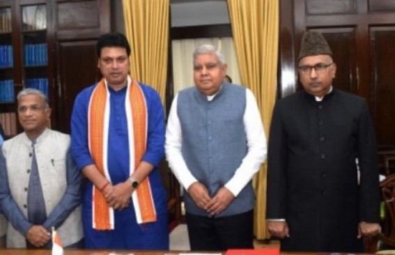New Delhi, Sep 29 (TIWN): Vice President and Rajya Sabha Chairman Jagdeep Dhankhar on Wednesday administered oath to two newly elected members of the Upper House of the Parliament -- former Tripura Chief Minister Biplab Kumar Deb, and BJP leader Ghulam Ali Khatana at his chamber in Parliament House.