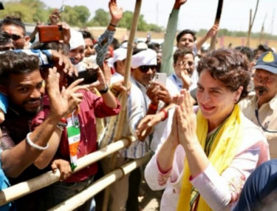 Bhopal, June 12 : Congress leader Priyanka Gandhi Vadra on Monday kick-started party's campaign for the upcoming Assembly elections by performing a pooja at the Narmada river and addressing a mega rally.