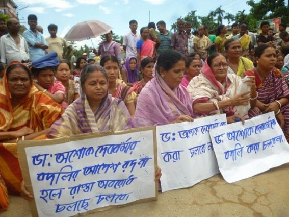 Ambassa, Sept 8 (TIWN): People of Ambassa today organized a road blockade against the transfer of Ayurvedic Doctor Ashok Debbarma to Kailasahar. Almost three to four days ago The populace of Ambassa deputed to the CMO with Mass-signature against the same but in vain. As a result they started blockade in the NH-44 from 11 am onwards. Even the Speaker of Tripura Legislative Assembly fell prey to this situation. At last the CMO promised the agitators that he will not issue the release order to the doctor. Then the blockade was called off.