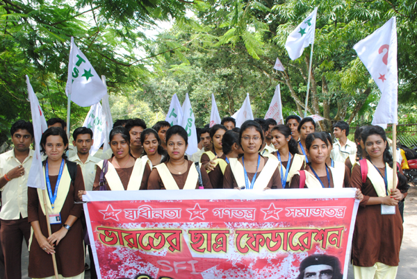 AGARTALA, September 9(TIWN): Student Federation of India, Tribal Student Union and National Students Union of India organized rallies regarding the upcoming college election in the state at MBB and BBMC here today.