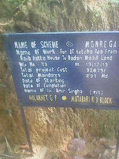 4) Project Name:- Construction of Katchha road from Debendra Baidya Home to Nepal Debnath House. Work order no-13-14/92 . Total cost Rs 39440/- with 336 man days generated. Completion date 23/8/2013.