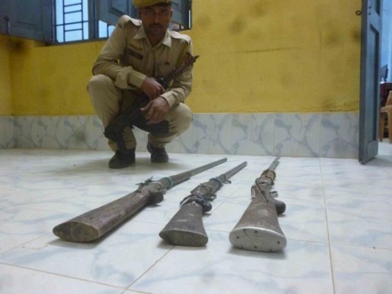 According to the police, SP Dhalai Timir Das alongwith SDPO Ambassa Chiranjib Chakraborty raided to Machurai Para of Chamalcherra under the P.S. area. In their raid, they seized three country-made rifles hidden under a tree. However, the cops were unable to net anybody in this connection. On the eve of the ensuing festive season, the seizure of the arms created much panic among the commonfolk. However, a high positioned source of police claimed that such kind of rifles are nothing new in tribal-dominated areas as they often use it to hunt boar, birds or even deer.