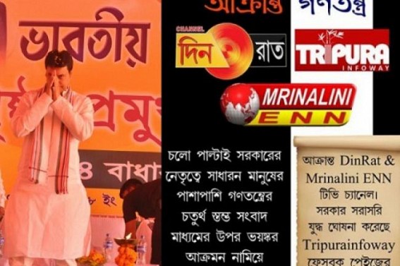 CPI-M in its social media has condemned the attitude of Tripura Govt to break-down the fourth-pillar-of-democracy mentioning 3 media houses names, which are undergoing major challenges for broadcasting : 1) Din-Raat, 2) Tripurainfoway.com (TIWN), 3) Mrinalini ENN.