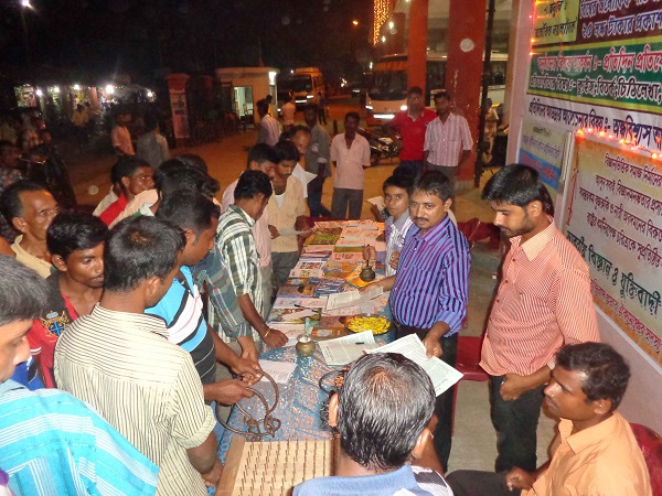 The members of rationalist organization discussing with people at their Puja stall at Bus Terminus, Kamalpur. TIWN Pic Oct 1