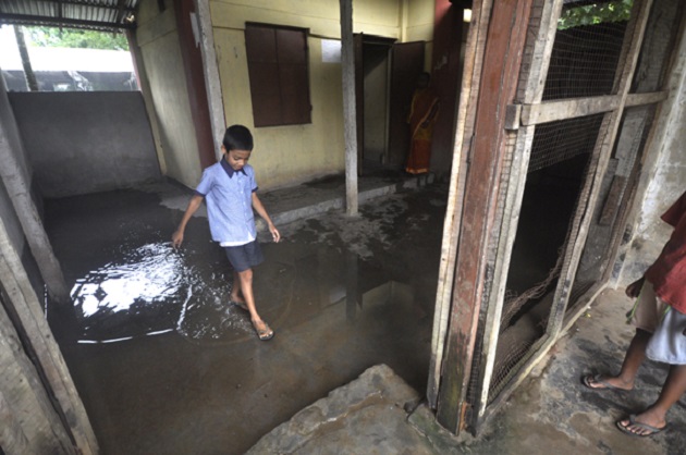 Picture :Filthy drainage water flooded classrooms at Nawapara School, Bisalgarh
