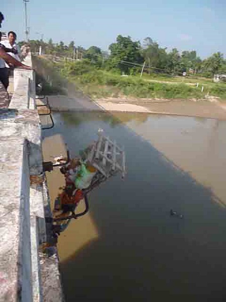 Idols being pushed from bridge causing damage to bridge and life risk to people