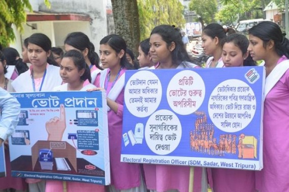 AGARTALA, March 30 (TIWN): The college students have stepped forward to spread the word about the importance of voting and the right to vote. In this connection, a Voters’ Awareness rally was organised by Women’s College today at Agartala.
