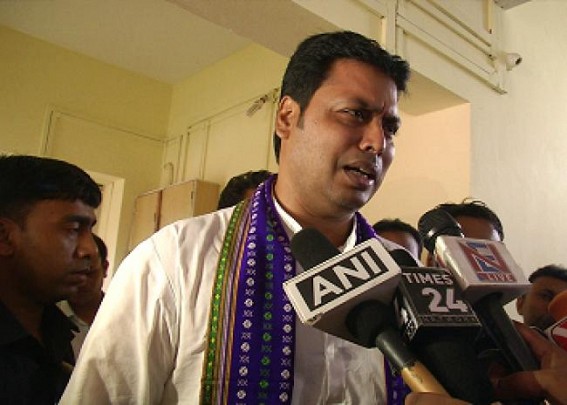 PHOTO : BJP Tripura President cum Chief Minister Biplab Deb addressing media. File Photo.