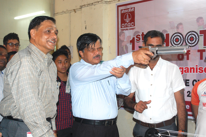 Picture : File Photo of former Chief Secretary S.K.Panda in a shooting range in ONGC, Agartala