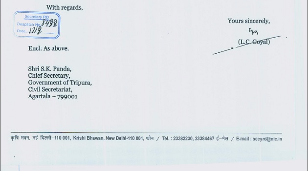 Picture : Union Rural Development Secretary N.C.Goyal's letter to Chief Secretary S.K.Panda