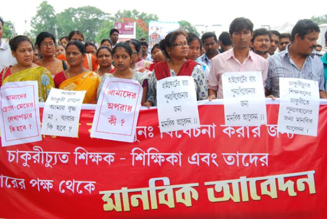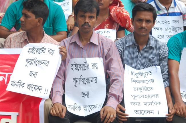 Advocate Arun Kanti Bhowmik specifically said," State Govt challenged the HC’s judgement in the Supreme Court. Accordingly Supreme Court issued a stay against the HC's judgement on the declaration of new recruitment rules. But no such stay order was given against the HCs judgement on the termination of 10323 teachers jobs( in its judgement given in May 7 this year). Thus, no doubt should remain about the termination of these jobs." It is to be mentioned here that after the state govt challenged the HCs judgement in the Supreme Court, it was scheduled that the matter would be raised on 12th September, 2014. But due to shortage of time the matter was not even raised.