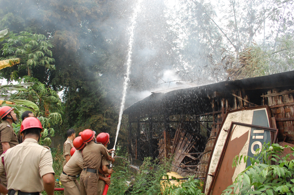 AGARTALA, October 28 (TIWN): Private owned SSS steel furniture factory at Bordowali area of the city was gutted in a massive fire that broke out at 9:30 am and kept smoldering till 11 am on Tuesday. However, loss of life was averted but goods worth Rs. five lakh were gutted in the inferno, it is learnt.The fire was detected in right corner of the factory at about 9:30 am. Five fire tenders were pressed into service to douse the flames. Civil officials accompanied by Police officials reached to the spot and oversaw fire-fighting operations for nearly an hour. Although there was no report of any causality, there was panic in the area because just in front of the factory Rajdhani Petrol Pump exists.At around 9:30 am, some workers saw smoke blowing from the factory. They immediately informed the locals who rushed to the factory and informed the fire service about the incident. Three fire fighters arrived on the scene immediately. Considering the intensity of the fire, Police and traffic were rushed to the spot to assist the fire fighting operation belated.