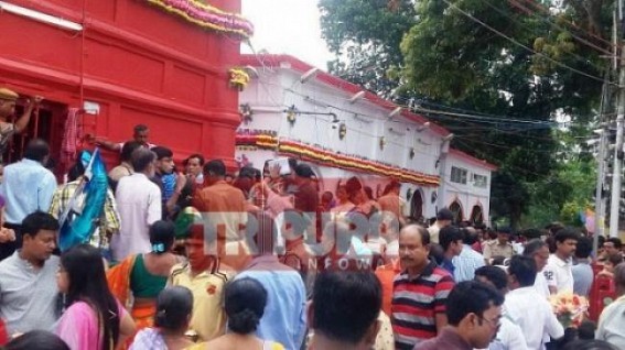 On Sunday also people from various corners of Udaipur City arrived at Matabari temple to pray Ma Kali for her blessing for their prosperous days in future.