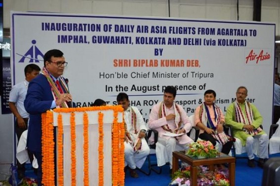 Tripura Chief Minister Biplab Kumar Deb, accompanied by Transport and Tourism Minister Pranajit Singha Roy and two Lok Sabha Members -- Pratima Bhowmik and Rebati Tripura -- flagged off the AirAsia operations. The AirAsia India Chief Operating Officer Sanjay Kumar said the airline would soon start flights from Northeast to south and western states. Speaking at the Maharaja Bir Bikram Airport, the Chief Minister said as part of Prime Minister Narendra Modi''s "achhe din" (good days) initiative, people of the state now could fly to anywhere in the country and abroad as many airlines had started operations from Tripura. IndiGo and Air India already have flights on the Agartala route. They operate direct flights from Agartala to Delhi, Kolkata, Guwahati and Imphal. For AirAsia, its 20th destinations in India. The Chief Minister, his cabinet colleagues and MPs had written to the Prime Minister and the Civil Aviation Minister to increase flights to and from Agartala. Airport Authority of India (AAI) Regional Executive Director Sanjiv Jindal said, Agartala airport was the second busiest airport in the region after Guwahati airport. The airport would soon be upgraded with modern facilities, he added. The runway at the airport would be expanded to 3,000 metres from 2,286 meters, he added.