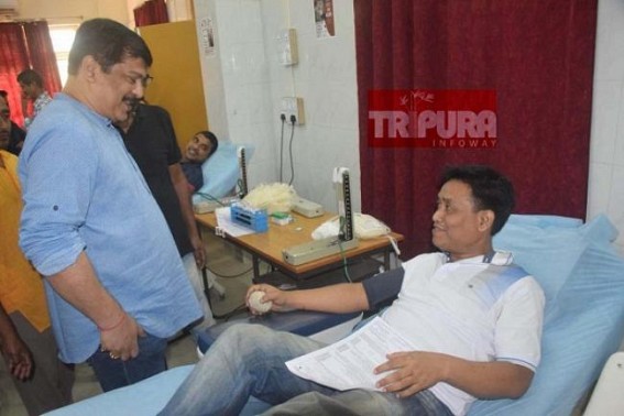 The ongoing blood crisis which led former Health Minister Sudip Barman to donate blood at the midnight at GB hospital on yesterday is due to a drastic fall of blood donation campaigning in this poverty gripped state Tripura recently, as a major section of institution and public stopped blood donation camps with slogan of “No Free Medical Service, No Free Blood”.