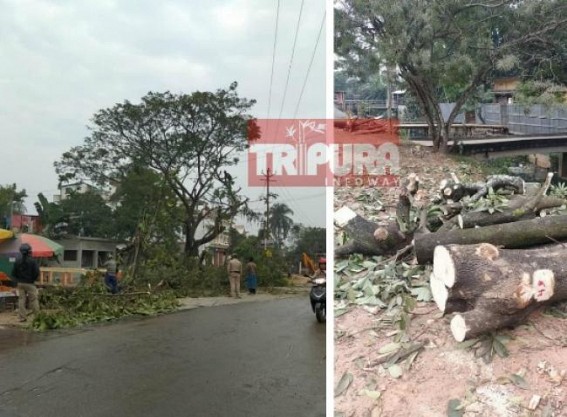 AGARTALA, Dec 26 (TIWN): Big trees are being fell down across Agartala city, erupting massive resentment among the public as Tripura capital city is losing its greenery.