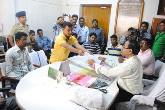AGARTALA, November 5 (TIWN): National Student Union of India (NSUI) state president Bapi Das along with other NSUI members submitted a deputation to the Director of TPSC, Narayan Das regarding the illegal recruitment of the Deputy Director on Tripura Public Service Commission, here today.