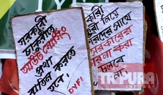Addressing at the protest rally, DYFI Secretary Nabarun Deb said, “The new recruitment not only will cause deprivations, but also to add corruption which has already infected various departments”.