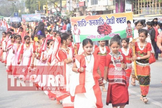 AGARTALA, Jan 23 (TIWN): Over 2,200 school students and diverse tableaux on a variety of prevailing issues, including climate change, terror strikes across the world, significance of Swachhata Abhiyan, were part of a colourful procession here on Wednesday to mark the 123rd birth anniversary of Netaji Subhas Chandra Bose.