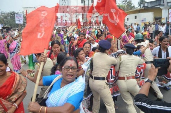 AGARTALA, March 6 (TIWN): CPI-affiliated CITU and various rights bodies have organised a 'Jail Bharo' (court arrest) protest in Agartala on Friday against the "anti-worker" policies of the Narendra Modi government and various demands for women including recognition to mid-day-meal, Asha workers.