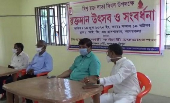 AGARTALA, June 14 (TIWN): On the occasion of World Blood Donor Day, Tripura Government Employee Federation organised blood donation camp in IGM hospital today. Ex-Health Minister Sudip Roy Barman attended the program.