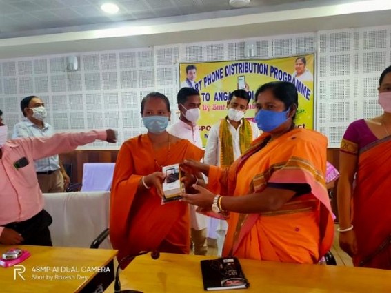 PHOTO : MP Pratima Bhowmik distributing SMART Phones among Anganwadi workers. TIWN Photo Aug 14, 2020
