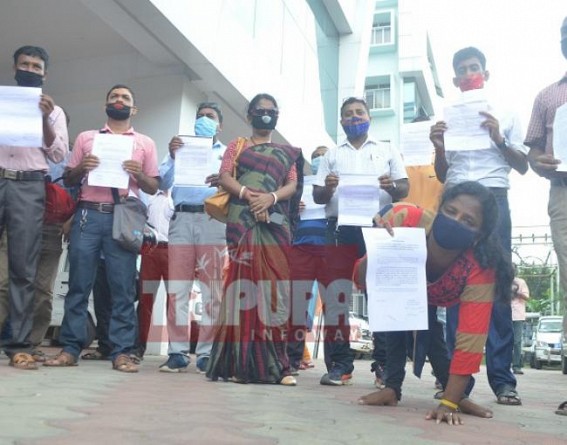 AGARTALA, Sep 4 (TIWN): A ‘dibyang’ woman was seen in protest with 10323 as she is also among the teachers who have lost their jobs in SC’s order and the Govt had promised to save their livelihood.