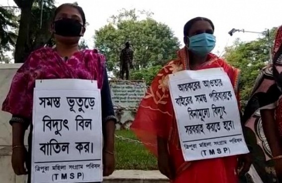 AGARTALA, Oct 20 (TIWN): Tripura Mahila Sangram Parishad (TMSP) held protest curriculum in Secretariat infront of the Gandhi idol today. The reason behind this protest curriculum was the privatisation of electric department which is causing excessive hike in electricity bills.