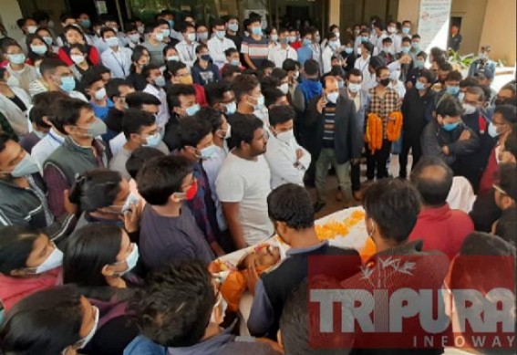 AGARTALA, Dec 29 (TIWN): Adarsh Dey (23), MBBS final year student's death incident in boys hostel is now triggering tension after Adarsh's father has alleged it is a murder incident amd not a suicide. He also asked, why without police, his body was brought down if it was hanging, although the AGMC authority made it clear that declaring someone dead is not ethical without following norms. When Adarsh was found being hanged for the last hope of Adarsh's survival, the hostel authority, students took him to the GB hospital but found dead. Adarsh father expressed shocks over his son's death. He asked, "Why will my son commit suicide ? He had no issue and was the best student as well as President of the College's one medical unit. Moreover, I was told first that my son met with an accident and asked me to come to Agartala GB hospital but when I came half of the road, I was informed that my son is no more. I do not agree that my son has committed suicide. It is an unnatural death. Proper investigation should be done".