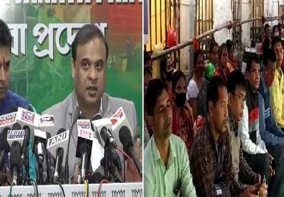 AGARTALA, Jan 11 (TIWN): The main impression of the BJP party created before the 2018 election about its stand on 10323 teachers was after the Double-Engine is set in State and Centre with collaboration of both State Govts, constitutional amendment will be initiated. At that time, Assam Education Minister Himanta Biswa Sarma also mentioned that a letter in this regard was sent to the Union Law Minister for the Departmental permission but what happened to the file is unknown. 10323 teachers before the 2018 election had walked with Modi's photo as BJP created an impression that it will secure 10323 teachers' livelihoods and thus the ad-hoc notifications given by Tripura Govt were set on fire. But now 10323 teachers are left jobless for the last 9 months and the death toll has risen to 81. While addressing the 36th day of protest, teacher Mintu Debbarma asked, "What happened to such promises which said that constitutional amendment will be done by the Govt ? Why have you forgotten your own promises ?"
