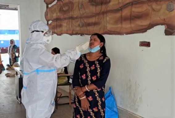 PHOTO : COVID test at Bishalgarh Railway Station. TIWN Pic April 30, 2021