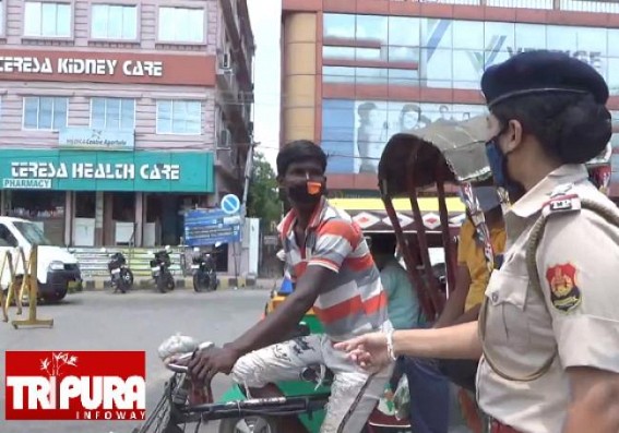 AGARTALA, May 19 (TIWN): Covid Curfew has fallen on Day-3 in Agartala Municipal Corporation (AMC) amid tight security has been deployed in state. Thorough checking of vehicles continue to find out whether anyone is violating the Curfew by going out without any necessary cause.. Proper actions are underway, said police. Sadar SDPO Ramesh Yadav on the 3rd day of AMC Curfew has said that as this Curfew was imposed aimed to break the chain of Coronavirus, so people must understand the gravity of the situation. "I appeal the people not to go out except emergency purposes. Stay home to break the chain of transmission.......", the SDPO said. He further informed media that police are checking each of the vehicles to find whether anyone is moving unnecessarily. Police continue to take legal action also against the violators. In Agartala Municipal Corporation (AMC), the positivity rate is 18%, as said by Law Minister Ratanlal Nath.