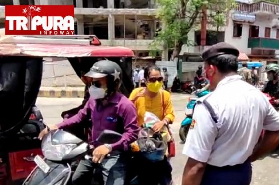 AGARTALA, May 22 (TIWN): On the 6th Day of "Corona Curfew" in Agartala, legal actions are underway against the Curfew violators. West Agartala OC-Jayanta Karmakar has said that due to maximum offices are closed on Saturday, the pressure on traffic is little less but still many people are violating rules. On holiday, with office pass, few people were found roaming whereas many were detected for not wearing helmets. Police have imposed fines on them. The Police Officer further requested people not to come out of home without any need. The Corona Curfew was imposed in Agartala to control Covid-19 as the percentage of Covid positive patients went high at the Agartala Municipal Corporation areas. Yesterday, Covid positivity rate has jumped high in Tripura and went to 7.55%.