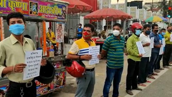 PHOTO : 10323 teachers, JMC's protest in front of City Centre, Agartala. TIWN Photo Aug 4, 2021