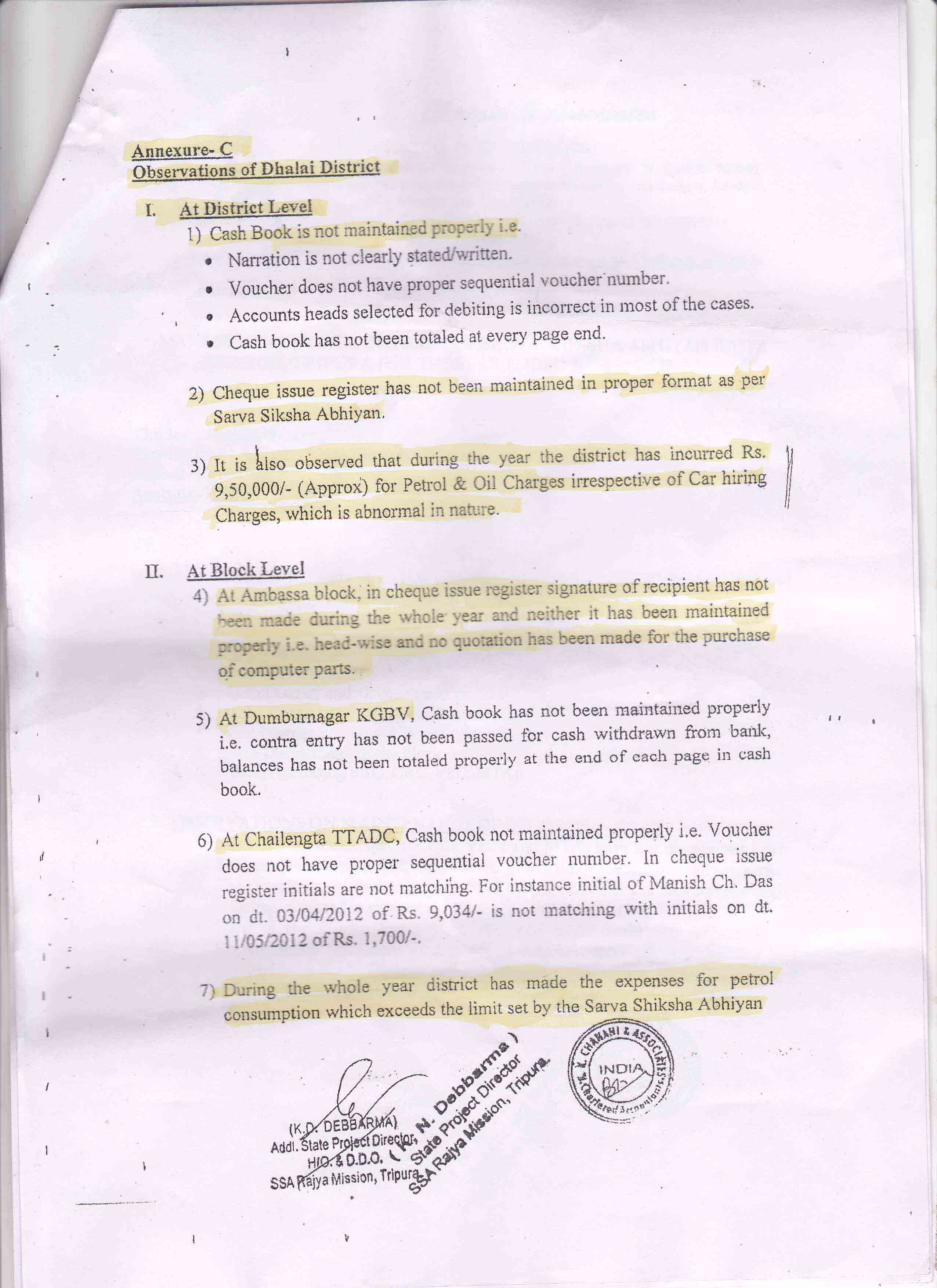 Now look at the district level observations of this audit team:-