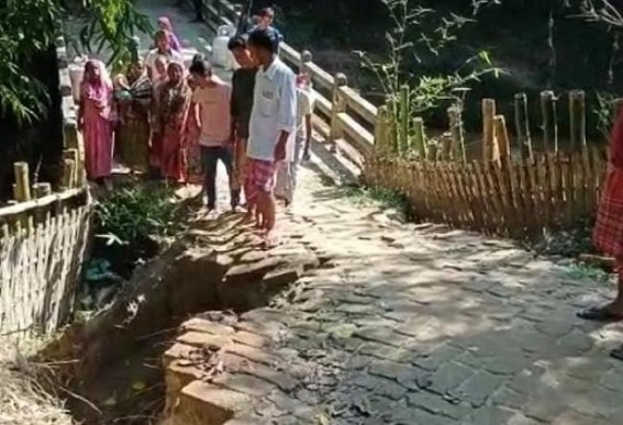 AGARTALA, Nov 19 (TIWN): The Bridge over the Rangapani River in Nidan Kobra area of Ward No. 3 of Jagai Bari ADC Village in Jampuijala Block has turned into a death trap. Soil on both sides the bridge is washed away and now the bridge is in an unstable state. The villagers are living in fear as the bridge could fall into the river at any time and thousands of people are crossing the road with life risk.