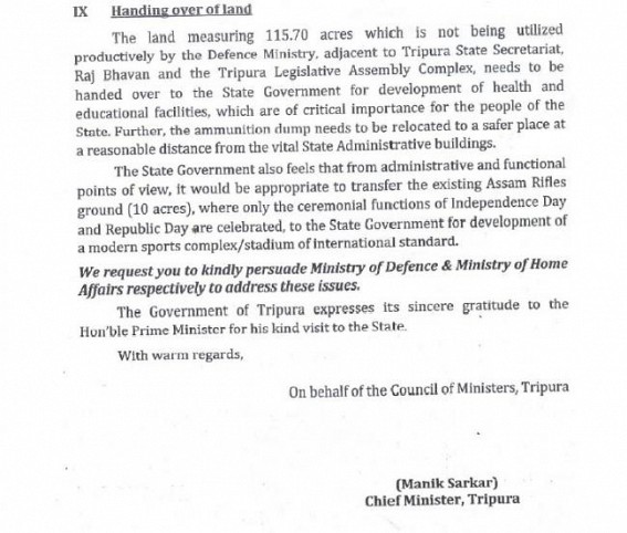 CM feels extremely unhappy about the serene greenary of Assam Rifles complex which was beautifully developed over the six decades by Army; Not only that, the presence of Assam Rifles always kept Agartala heavily secured as hardly anyone can trust on Police. CM's hungry eyes only concerned about the cash generation for party, helping corrupt contractors, destroying lush green 115.70 acres land into a concrete desert so that more political rallies can be held.