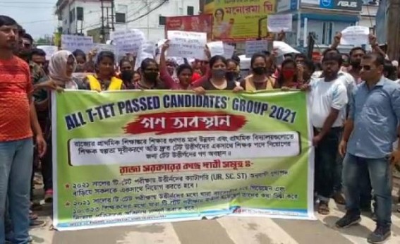 AGARTALA, May 27 (TIWN): Tripura TET qualifiers have staged 2 hours-long protests in Agartala demanding immediate recruitment. The TET qualifiers are seated unemployed even after passing TET triggering massive tension, and frustration among unemployed, qualified youths. When over 3,600 TET qualifiers are jobless, Tripura BJP Govt only recruited 600 candidates. Angry unemployed youths have slammed the Govt, and demanded they should be recruited immediately. Talking to unemployed youth, she said, “We request the Govt with folded hands to please recruit us……we have no other demand”. After Education Minister Ratan Lal Nath recently said that TET teachers who are hoping to get appointment have to wait till Durga Puja month, resentment has gripped the job seekers. Also, how many TET qualifiers to be recruited by that time, it has also not been said clearly.