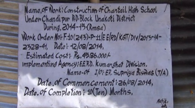 Agartala, January 22 (TIWN): New scam revealed out at Kailasahar. Siphoning of Rs 45 lakhs 86 thousand rupees under RMSA has been reported from Chaintal Madhyamik Vidalaya. According to the local sources, in the financial year 2011-12, Rs 45 lakh 86 thousand rupees was dispatched for the construction of double storied building containing 8 rooms. But the work started in the year 2013. Though, the sanctioned amount have been granted for the construction of double storied building, but the actual truth revealed out that the whole amount was invested only for the construction of one storied building.