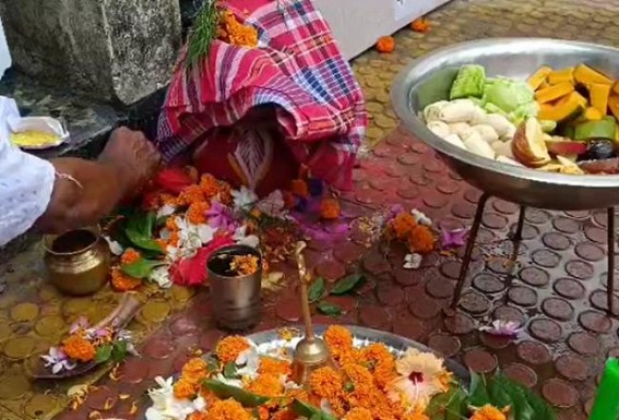 PHOTO : ‘Khuti’ puja marks Druga Puja’s holy invocation. TIWN Pic July 11, 2023