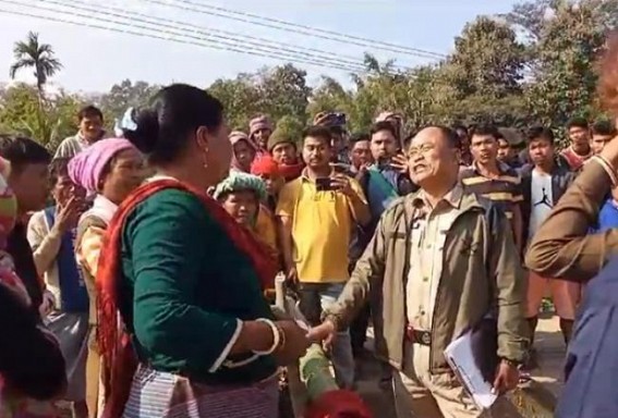 AMBASSA, Jan 6 (TIWN): Protesting against pending MGNREGA wages, local people blocked road in the Ambassa-Gandacherra route, resulted a heavy congested traffic jam on both side of the road. Vehicles remained stranded for hours there as the agitators were unready to vacate the area without getting their wages which has been pending for 1 and half month. Talking to some of the agitators, they alleged that for months they are knocking doors of various offices including the panchayat but everytime they are assured to be helped but no help was ultimately provided.