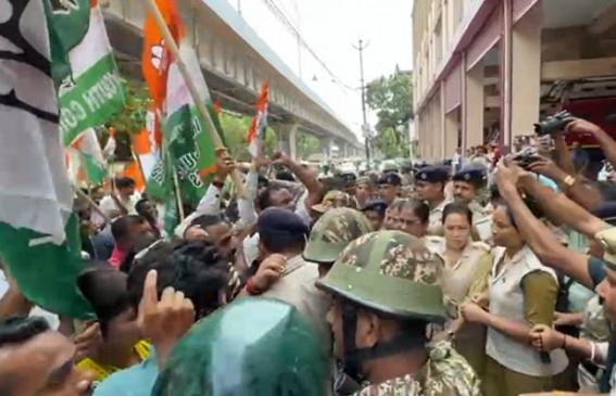 AGARTALA, April 22 (TIWN): Tripura Congress organized a protest in Agartala demanding an investigation into 2022 Fire Service recruitment, which was canceled by the state government recently without giving any valid cause. A deputation was scheduled to meet with the Fire Brigade Director in this regard. Amid the protest rally, the Congress agitators developed an argument with the police after a tussle erupted between these two groups. Later, police arrested all the agitators and took them to the AD Nagar ground.
