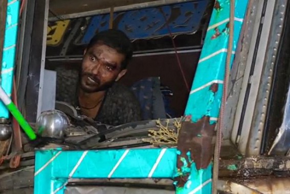 AGARTALA, Aug 5 (TIWN): Rod cutter machines were down! Officials are trying their best to start this old machinery, which was the only equipment of the disaster management department officials present there to rescue him. The truck driver named Mihir Lal Debnath was stuck inside the vehicle after an accident where a portion of the truck had fallen on him and pressed him to death. But the death was not rapid; but it tortured the victim for around 8 hours.